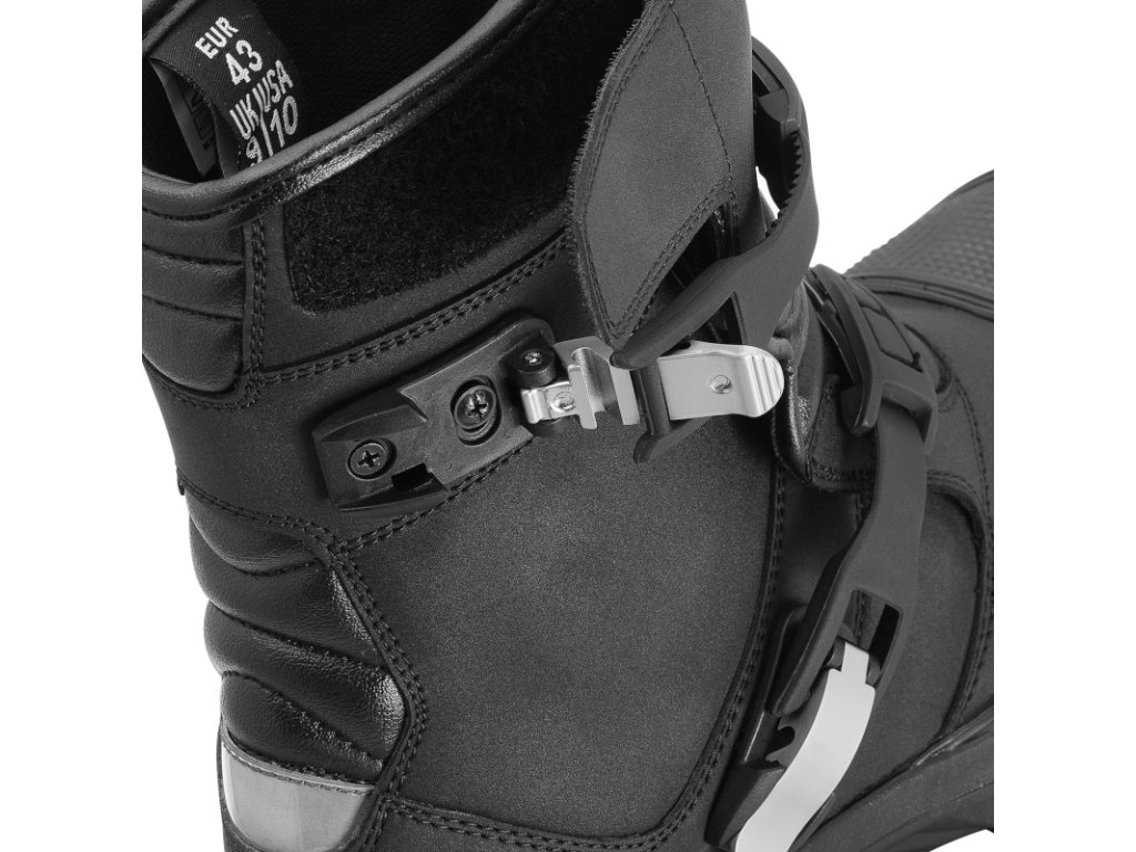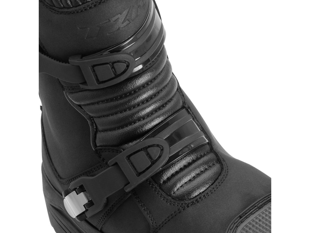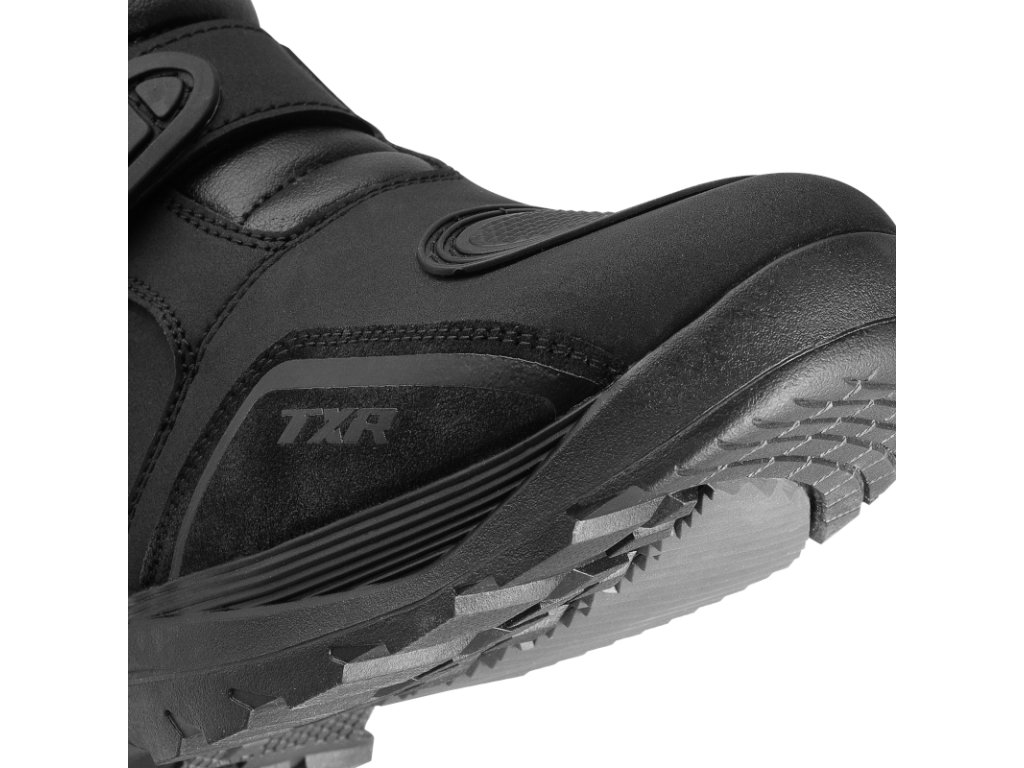 Moto boty TXR Adventure Low jsou středně vysoké turistické boty, které se vám budou hodit jak na onroad, tak i na offroad ježdění na motocyklu. Vyrobeny jsou z materiálu Micro syntetická kůže, která vyniká svojí pevností a přizpůsobivostí, v kombinaci s voděodolnou a prodyšnou membránou HIPORA®. Membrána HIPORA® je voděodolná a prodyšná pro vysoký komfort při nošení. Z vnitřní strany moto bot je použita 3D podšívka Mesh, která dobře reguluje teplotu a integrovaný chránič kotníku. Olejivzdorná podrážka a antibakteriální vložka samozřejmostí. Dvě přezky ze slitiny hliníku lze polohovat.