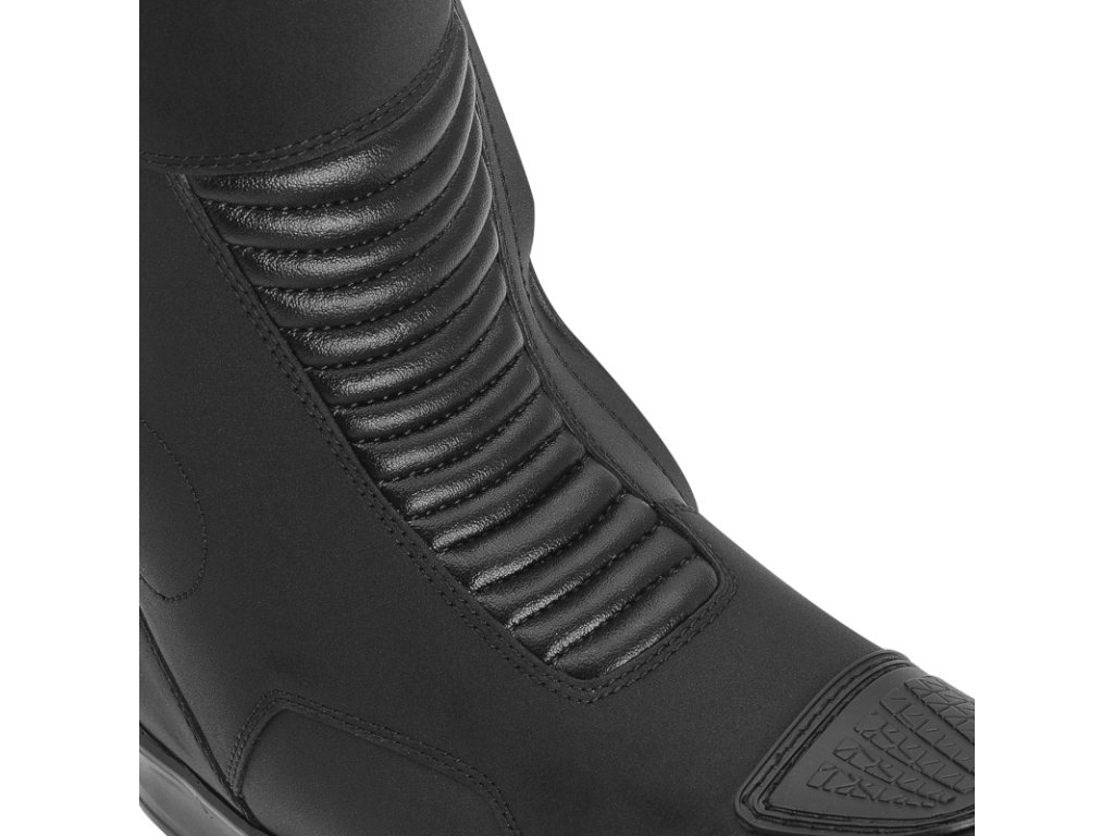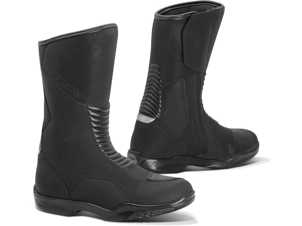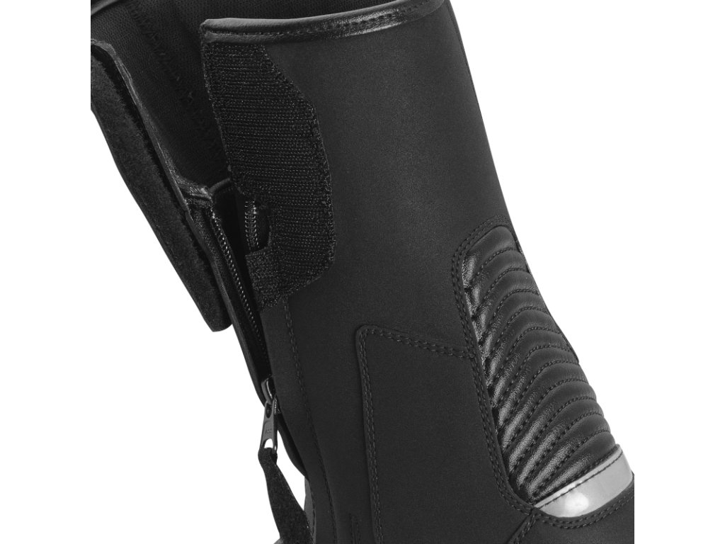 Moto boty TXR Raven patří do kategorie turistických moto bot. Jsou vytvořeny z kůže s PU povrchovou úpravou a membránou HIPORA®, která je voděodolná a prodyšná. Bezpečnost doplňují reflexní prvky a protiskluzová podrážka nové generace. S ohledem na pohodlí oceníte vnitřní prodyšnou Mesh podšívku pro ideální odvod vlhkosti a stretchové panely na nártu pro větší volnost pohybu. Na úrovni řadičky je materiál zdvojený. Boty se zapínají pomocí zipu YKK a manžety na suchý zip.