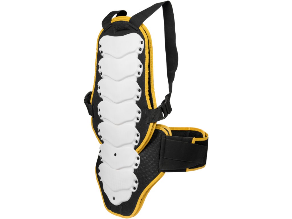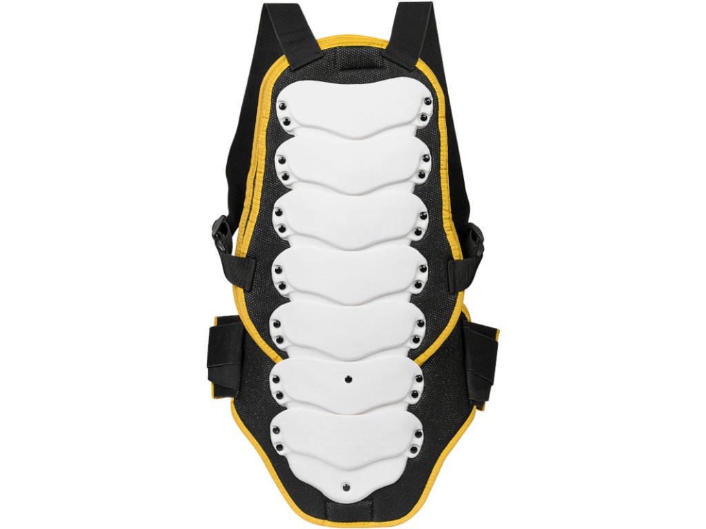 Chránič páteře v kombinaci bílé, černé a fluo žluté barvy. Vhodný pro využití na nejrůznější sporty.