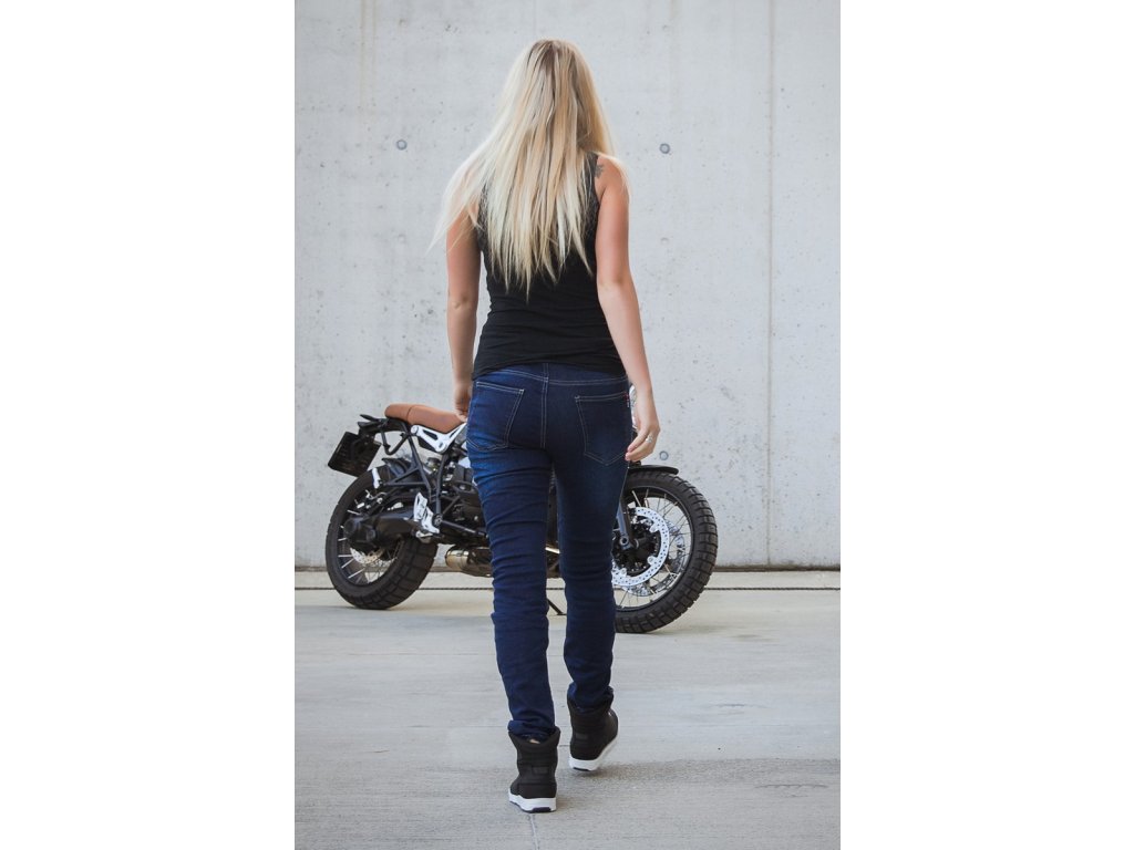 Dámské jeansy na motorku jsou vyrobeny dle normy FprEN 17092-3:2018 s originálními YKK zipy. Využijete i 4 vnější kapsy pro uložení drobností. Jsou nabízeny ve dvou délkách nohavi L32 a L34. Vhodnou velikosti vyberete díky nahlédnutí do naší tabulky velikostí. Propracovaný dámský střih a moderní vzhled předčí Vaše očekávaní