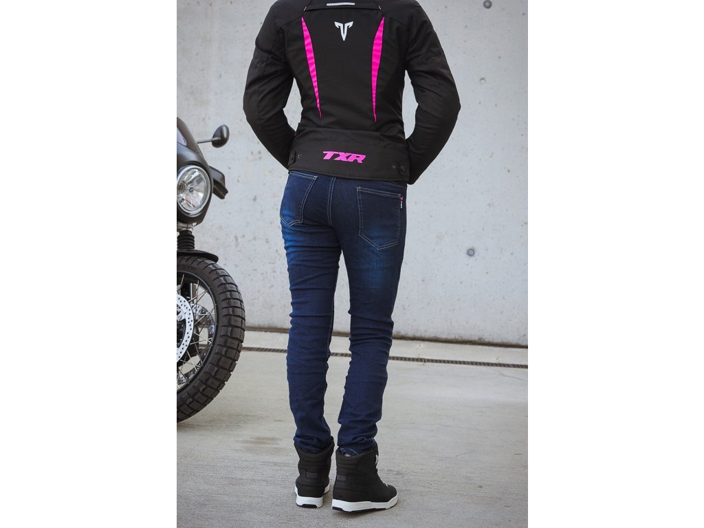 Dámské jeansy na motorku TXR Sonic jejich vyztužení z 100% DuPont™ Kevlar® Vás uchvátí stejně jako pohodlné CE chrániče kolem level 2 a 4 vnější kapsy.