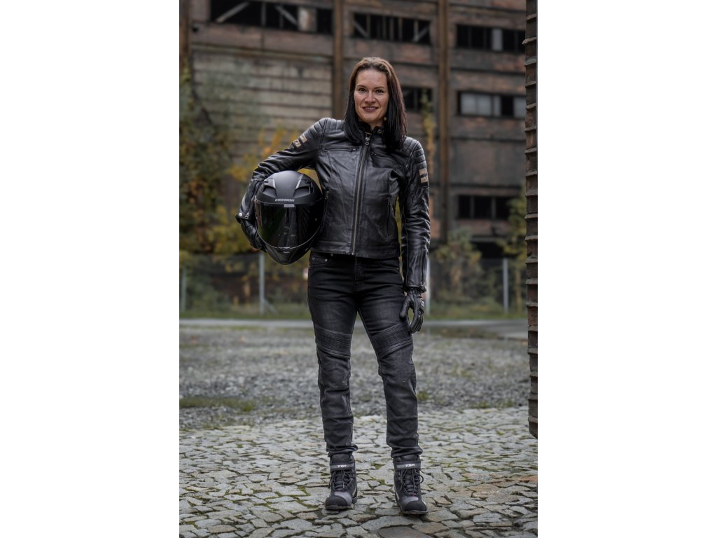 Dámské jeansy na motorku TXR Vector černé mají zvýšený pas v zadní části, 4 vnější kapsy a stretch panely nad koleny a bedry pro maximální komfort.