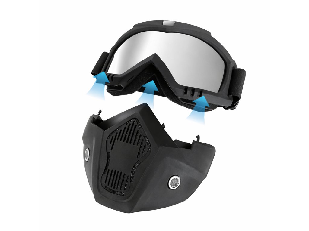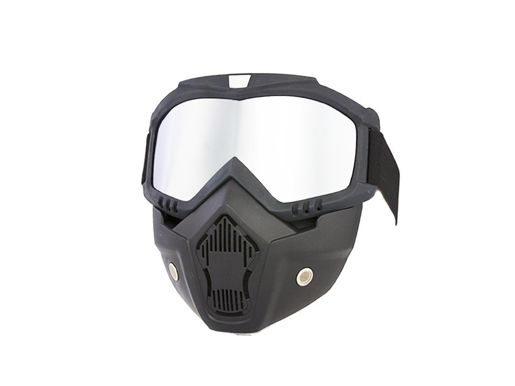 Maska na motorku TXR s brýlemi černo-stříbrná