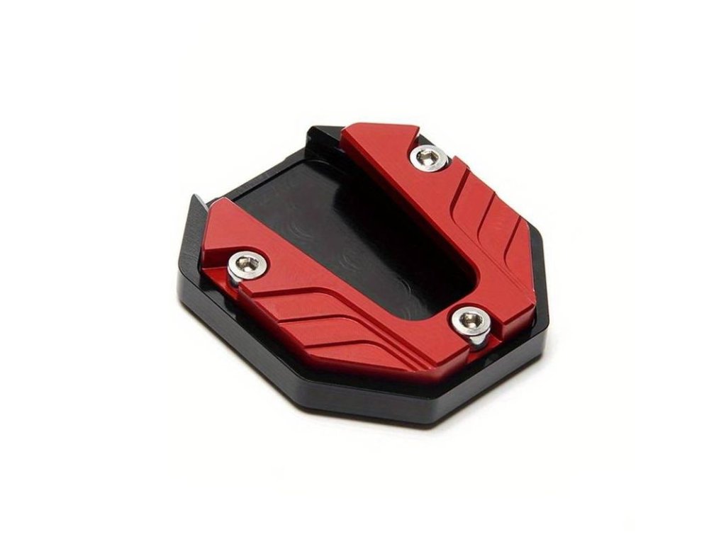 The TXR black-red side stand extension is the ideal solution to increase the stability of your motorcycle on unpaved and soft surfaces. This extension is designed to provide a firm and stable base, preventing the stand from sinking into soft terrain.