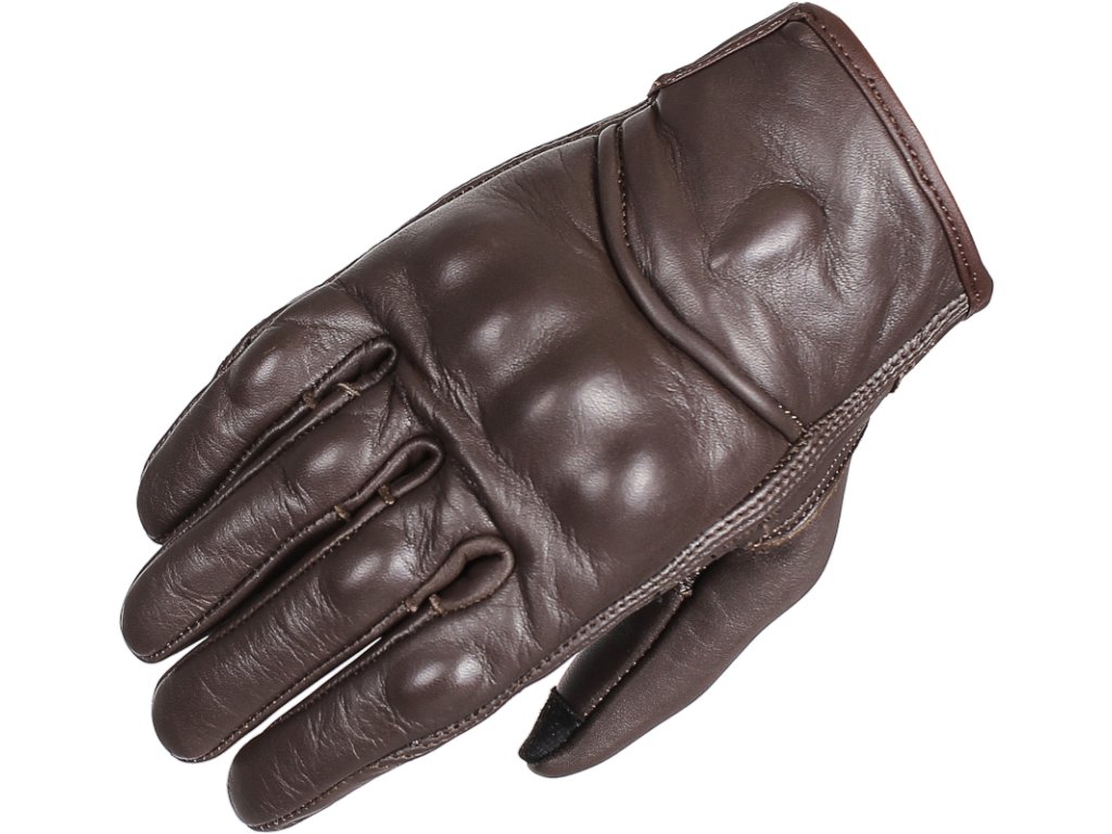Dark brown short moto gloves that all fans of the chopper or cafe racer style will fall in love with. Uniform appearance thanks to covering the protectors with a layer of leather.