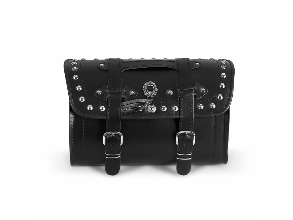 Motorkerékpár csomagtartója marhabőrből, vastagság 2,8 - 3,2 mm vízlepergető bevonattal ellátva.