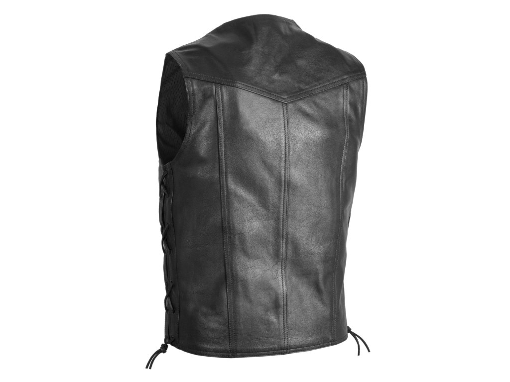 Kožená vesta na motorku TXR Road si Vás získá svou hovězí kůží o síle 1,1 - 1,2 mm. Její mesh podšívka ze 100% polyesteru Vám zaručí ideální cirkulaci vzduchu. Zapínání pomocí 4 druků. Vesta má 2 vnější a 2 vnitřní kapsy. Stylové šněrování na bocích poslouží pro snadnou regulaci velikosti. Je to kvalitně zpracovaná vesta klasického chopper stylu na motorku i běžné nošení.
