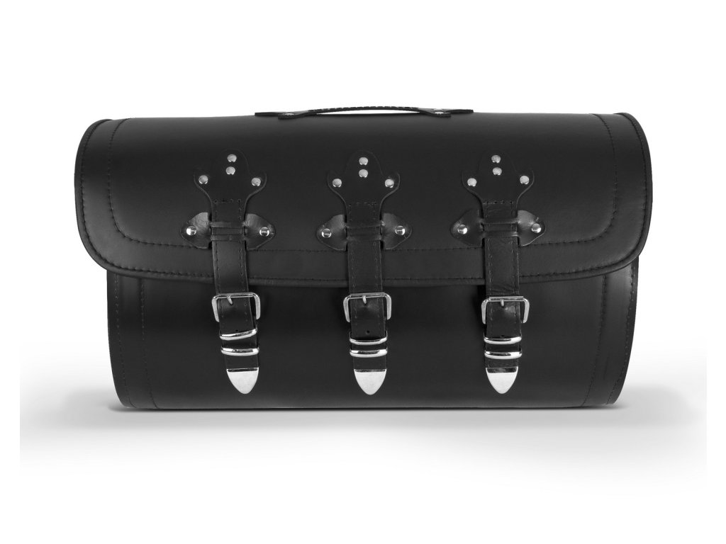 Kufr na motorku z hovězí kůže, tl. 2,8 - 3,2 mm opatřena vodoodpudivým povlakem.