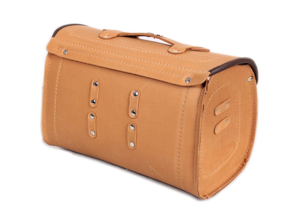 prémiová hovězí FULL GRAIN kůže; rozměry 40cm x 26cm x 23cm; víko opatřeno madlem; zapínání dvěma pásky