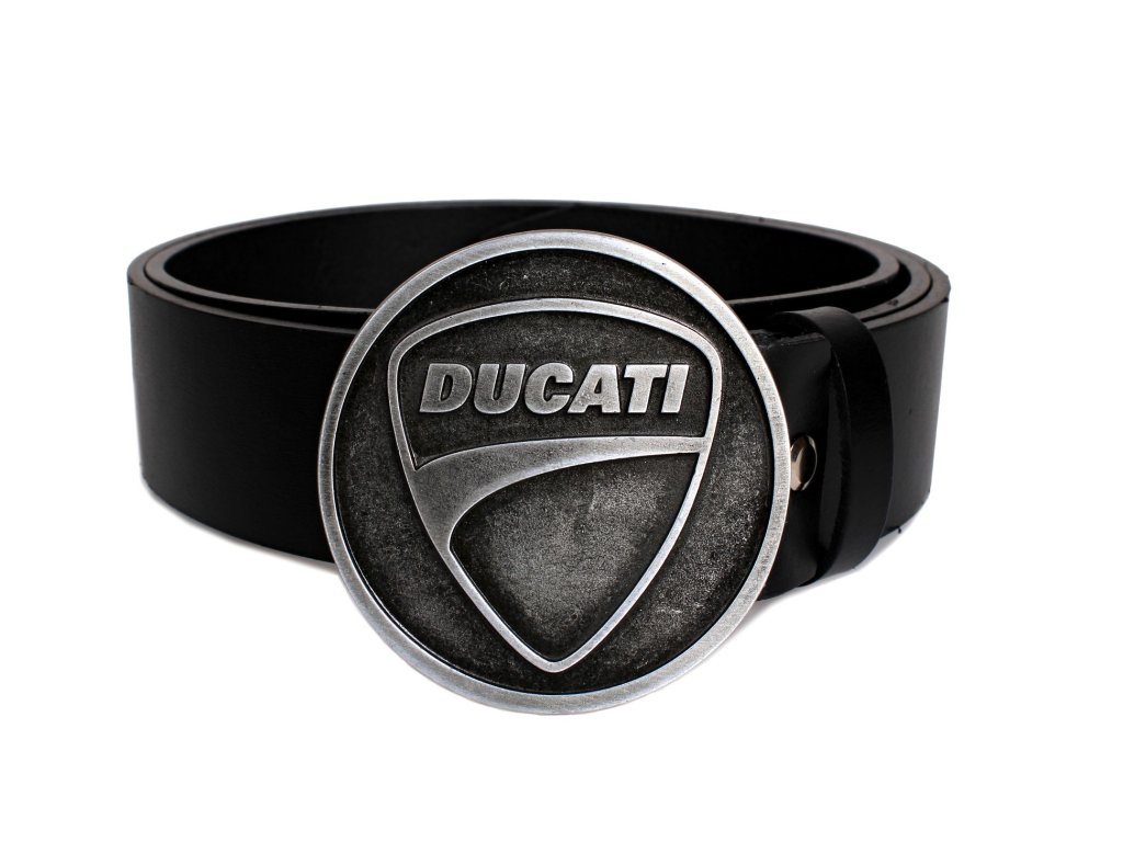 Moto opasek s přezkou Ducati, vyrobený z hovězí lícové kůže, zaručující dlouhou životnost.