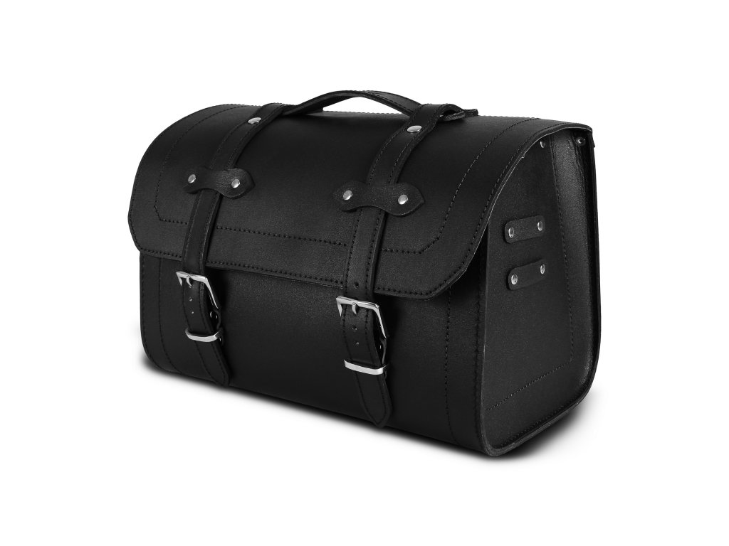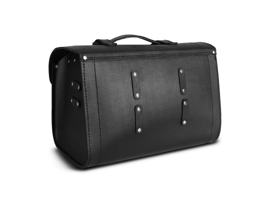Kufr na motorku vyroben z hovězí kůže, tl. 2,8 - 3,2 mm opatřena vodoodpudivým povlakem.