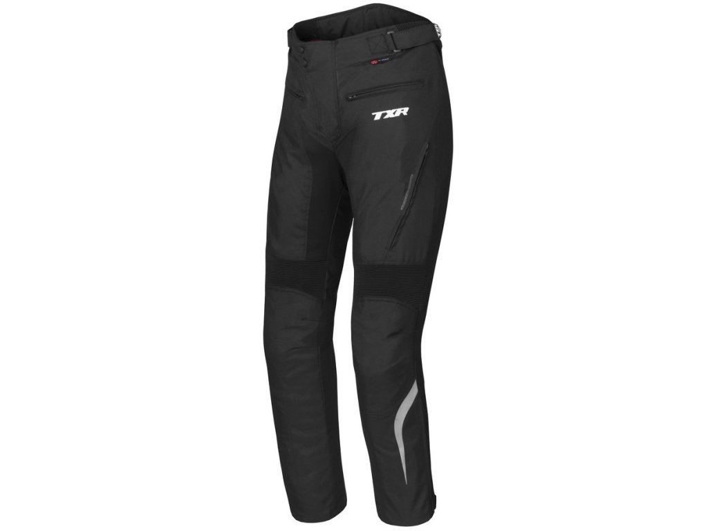Prodloužené moto kalhoty TXR Rival černé vysoce odolné proti prodření, výškově nastavitelné chrániče kolen v kombinaci s 4 Way Stretch v rozkroku.