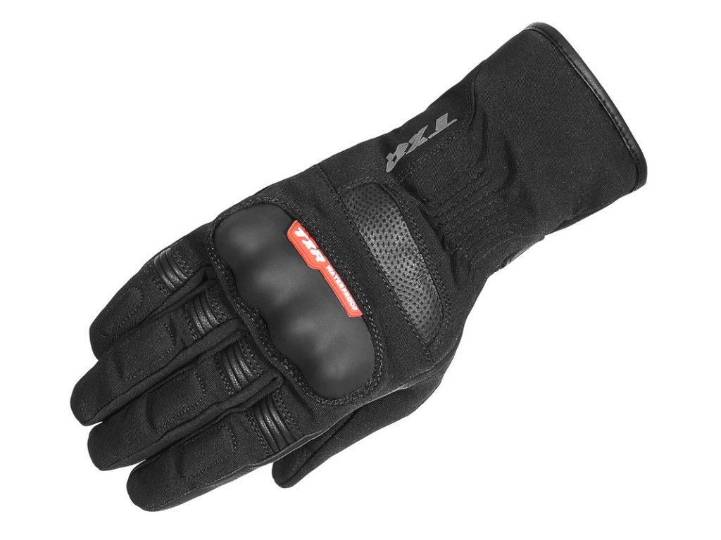 Moto rukavice TXR Everest WP využijete zejména v chladnějším počasí díky jejich zateplení a membráně. Ušity jsou z hovězí kůže na dlaní + 100% polyesteru na hřbetu, který zajišťuje ideální odvod potu + membrány Hipora. Uvnitř rukavic naleznete zateplenou podšívku, která vás zahřeje i v chladnějších dnech. V případě deště určitě oceníte integrovaný gumový stěrač pro použití na hledí helmy. I přes zateplení se nemusíte bát citlivosti během jízdy, jelikož na prstech jsou použity stretch panely, které právě citlivost zlepšují. Součástí je také TPU plastový chránič kloubů a dlaně.