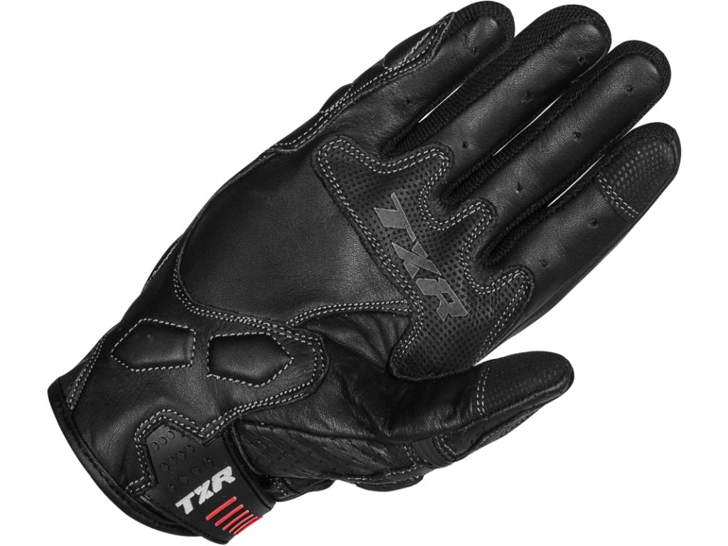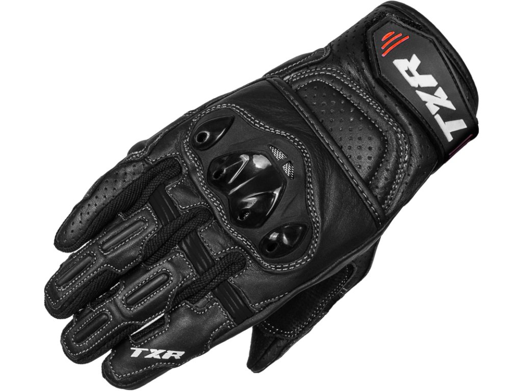 Moto rukavice TXR Hyper černé jsou kvalitní krátké moto rukavice vhodné pro cestování. Ušity jsou bezpečnostními švy z anilinové hovězí kůže, která je v oblasti dlaně zdvojená. Vaše ruce ochrání plastový chránič kloubů, pěnové chrániče prst, chránič dlaně. Pohodlí podporují stretch panely na prstech, které vás nebudou omezovat v pohybu. Na dlaních naleznete protiskluzový materiál pro pevný úchop řídítek. Rukavice je možné si upravit pomocí stahovacích pásků na suchý zip umístěných na manžetách.