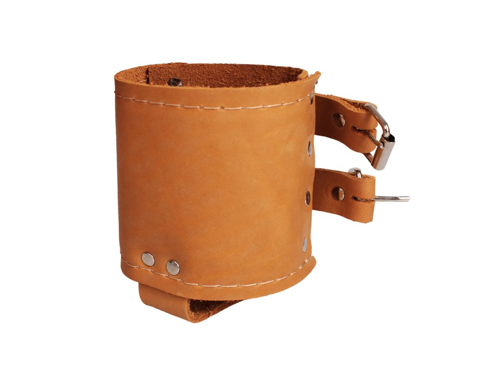 Držák je vyroben z pevné hovězí kůže; průměr 9 cm; vyrobeno v EU