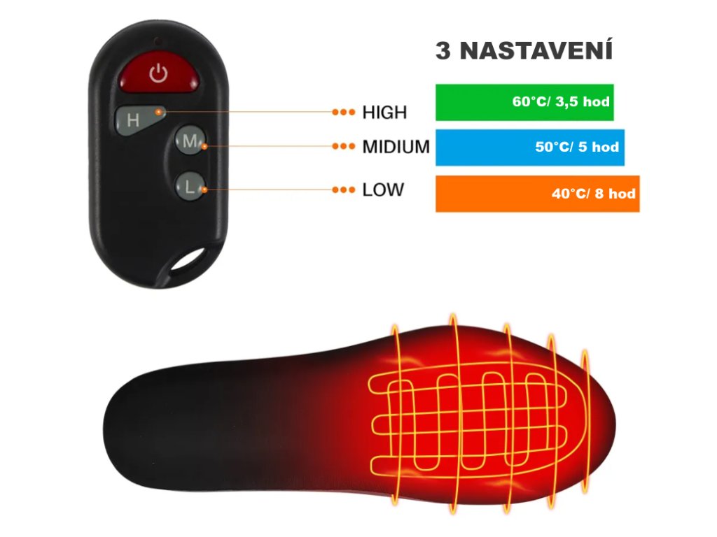 Vyhřívané vložky do bot na dálkové ovládaní TXR